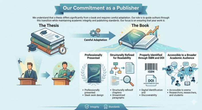 We understand that a thesis differs significantly from a book and requires careful adaptation. Our role is to guide authors through this transition while maintaining academic integrity and publishing standards.
